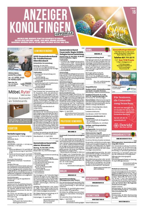 Gerne nehmen wir Ihre Publikationen via E-Mail inserate@anzeigerkonolfingen.ch entgegen.